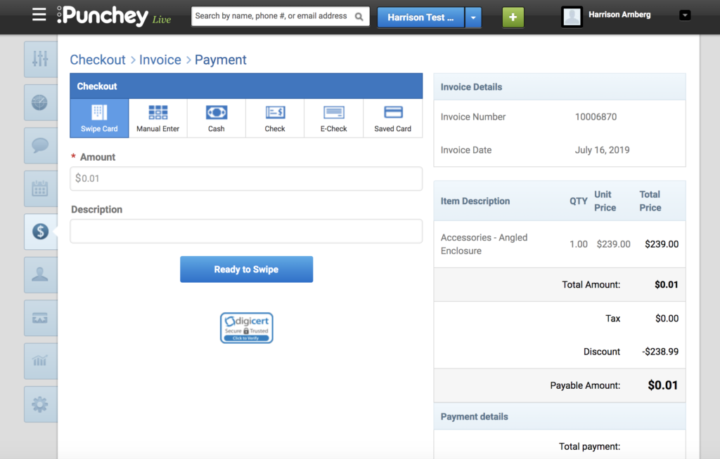 - In your main dashboard at live.punchey.com, go to the Payments tab.