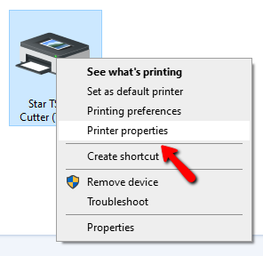 - Right click on Star TSP100 again and this time select Printer Properties.