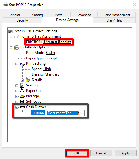 - Change FRICTION to 54mm x Receipt.