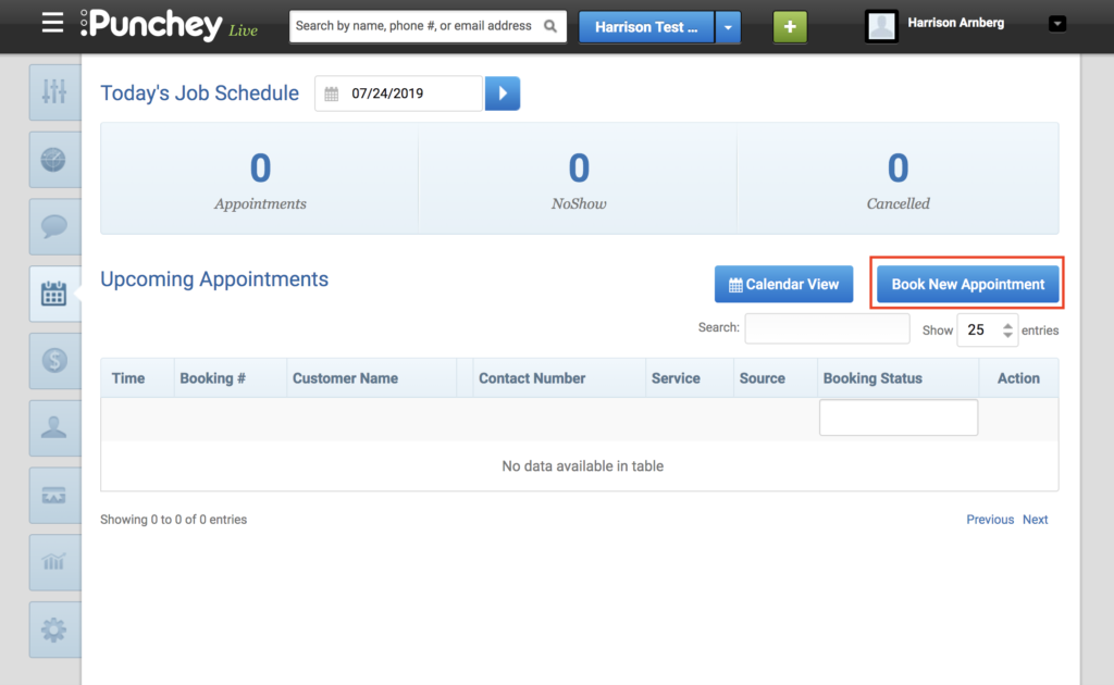 After your appointment is booked, you can return to the appointments page. Hover over the icon under “Action” and then select “Generate Bill.”