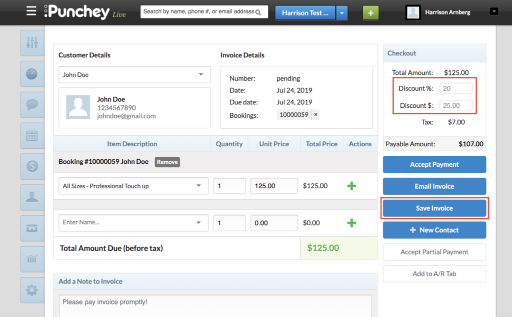 You’ll then be brought to the invoice screen where you can enter a discount for your special customer and save the invoice. Now you will be ready to go for your appointment.