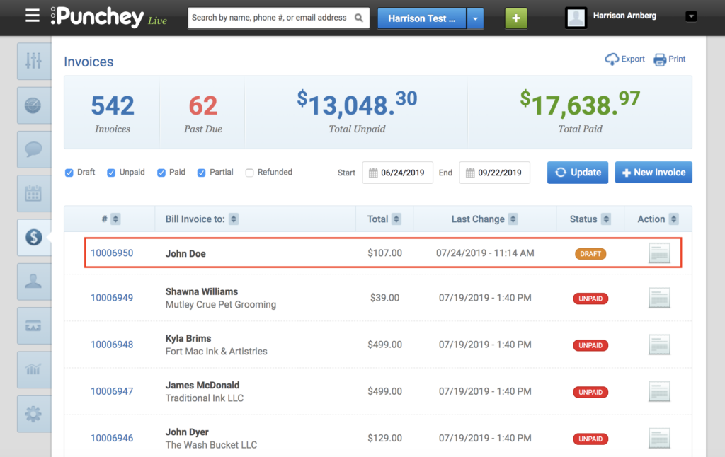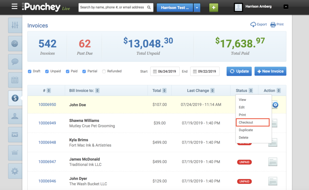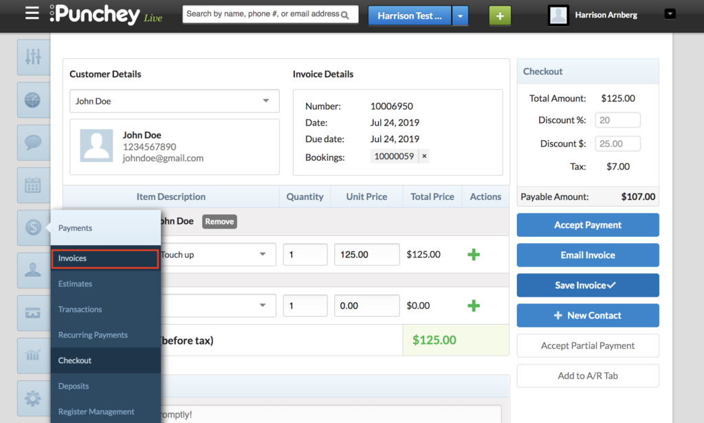 After you have completed your service and are ready to check out your customer, navigate to “Invoices” under “Payments.”