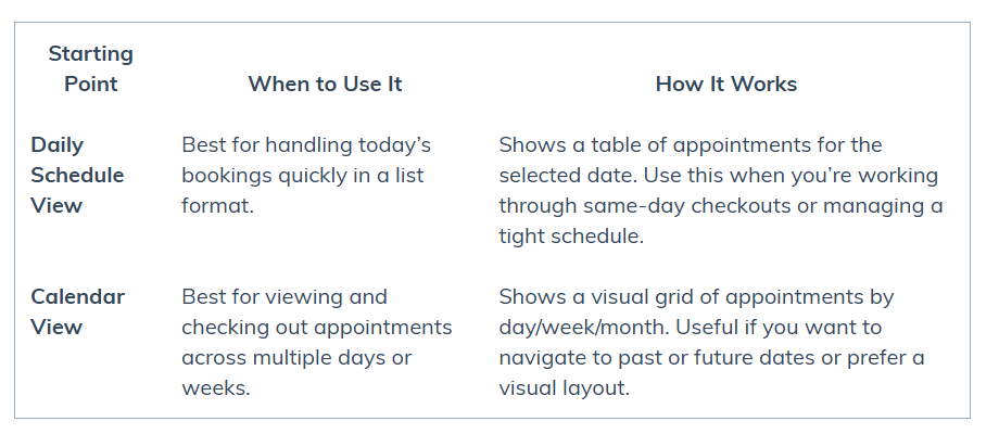 Checkout & Close Appointments – Daily Schedule View