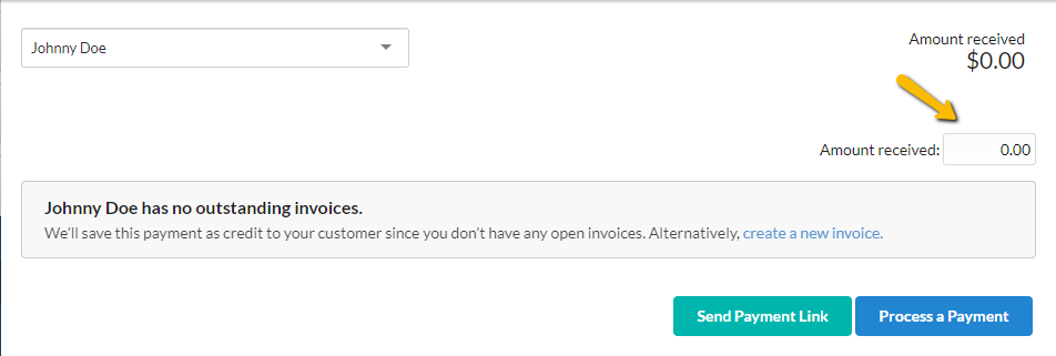 This step collects money from the customer and stores it as unapplied credit—not tied to any invoice yet.