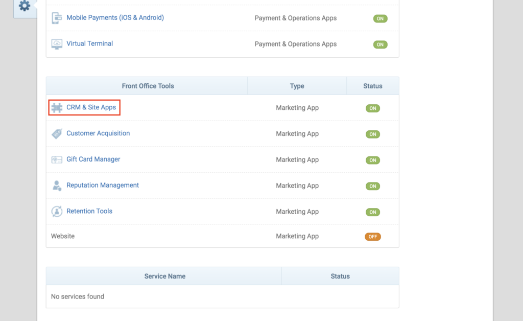 Now, locate “CRM & Site Apps” towards the middle of the tab.